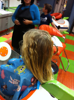 Now that I am weeks away from having a newborn, I figured I would make my life just a little bit simpler and get her hair cut. She would be cute if she was bald honestly!